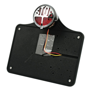 CPV LICENSE PLATE BRACKET BLACK, WITH LED STOP TAILLIGHT, 143MM X 210M