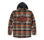 Tyylikäs Harley-Davidson takki moottoripyöräilijöille, jotka huolehtivat tyylistään myös vapaa-ajalla. Ihanteellinen viileisiin päiviin ja rentoon tyyliin. Materiaali 100 % harjattua puuvillatwilliä, vuori 100 % polyesterisherpaa. Sisäpuolella collegetakki vetoketjulla (ei irrotettavissa) ja kiristysnyörit hupussa. Kaksi rintataskua ja kaksi sivutaskua – kaikissa painonappikiinnitys. Säädettävät hihansuut ja Harley-Davidson-applikaatio rintataskussa. Selässä klassinen Bar&Shield.
