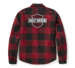 Tämä vuorattu takki yhdistää klassisen Harley-tyylin poikkeukselliseen mukavuuteen – täydellinen kylmiin päiviin. Pehmeä, harjattu puuvillatwilli, jossa on näyttävä ruutukuvio. Materiaalia 100% puuvilla ja vuori 100 % polyesteri-sherpa-teddyfleeceä. Napit edessä ja hihansuissa. Napitettavat rintataskut ja sivutaskuissa nepparikiinnitys. Brodeerattu Harley-Davidson-teksti rinnassa. Suuri brodeerattu B&S -logo selässä.